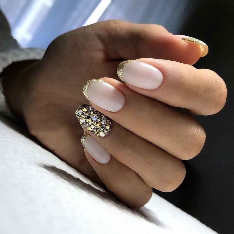 Маникюр с золотыми блестками и стразами