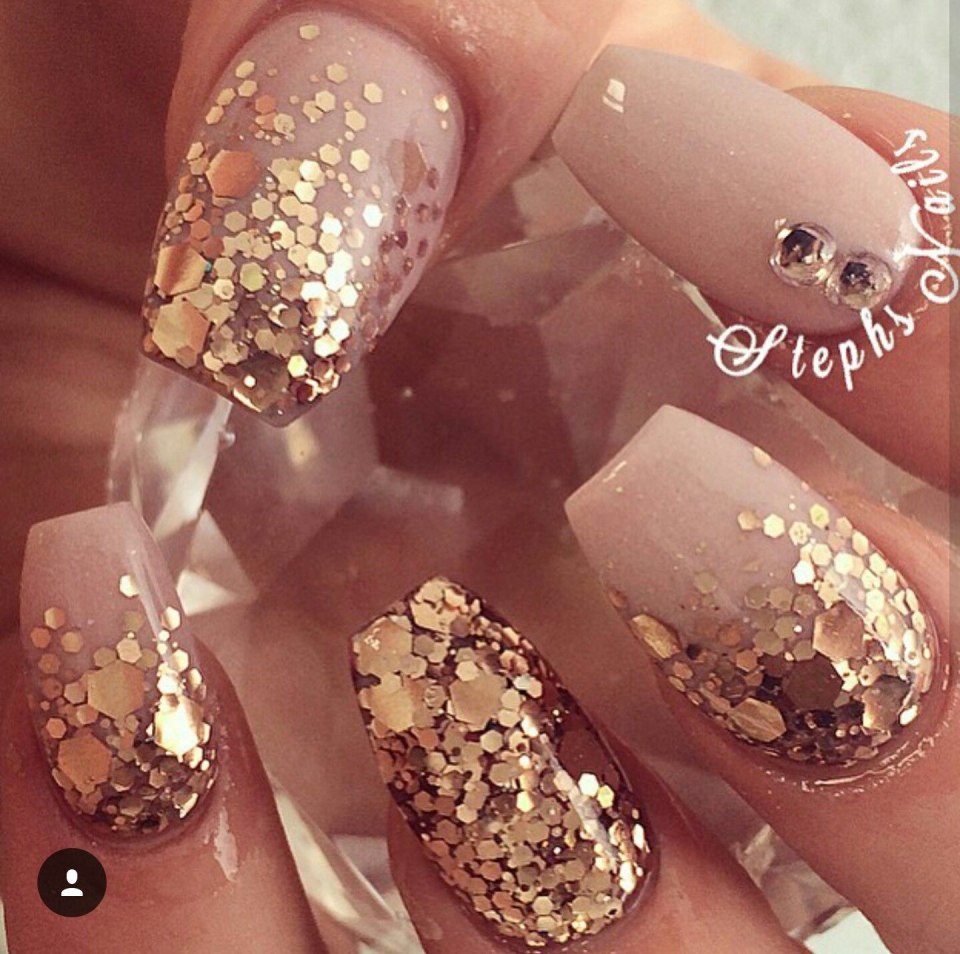Маникюр с золотым глиттером