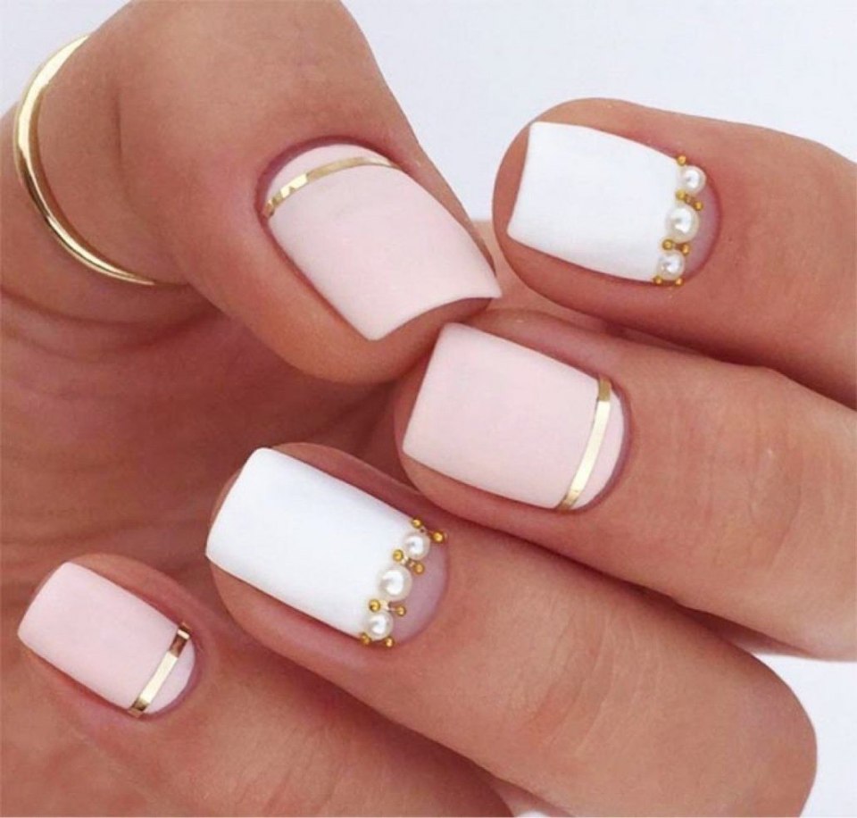 Ногти розовые с золотом