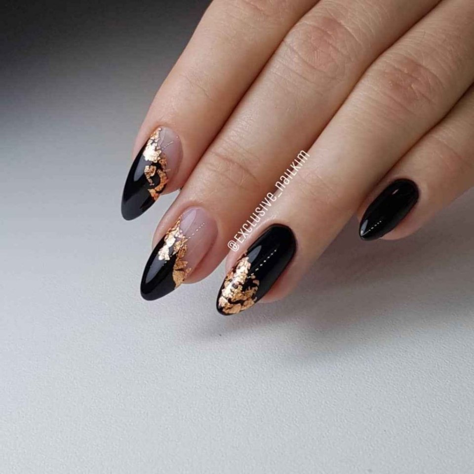 Ногти френчем черныц с золотлм