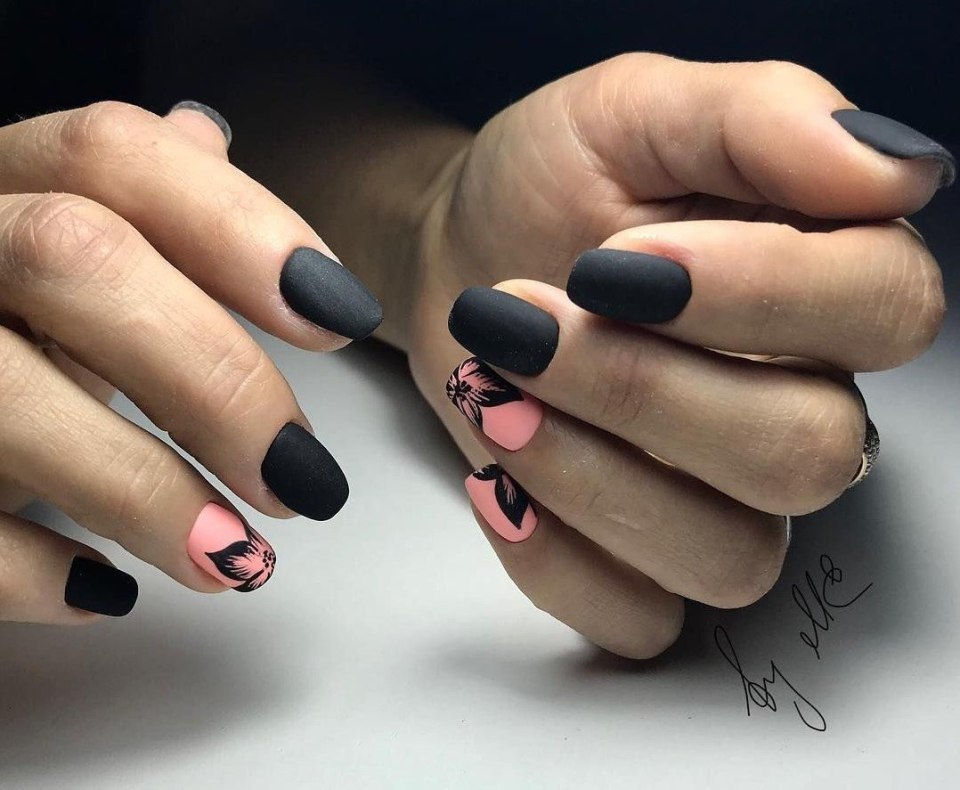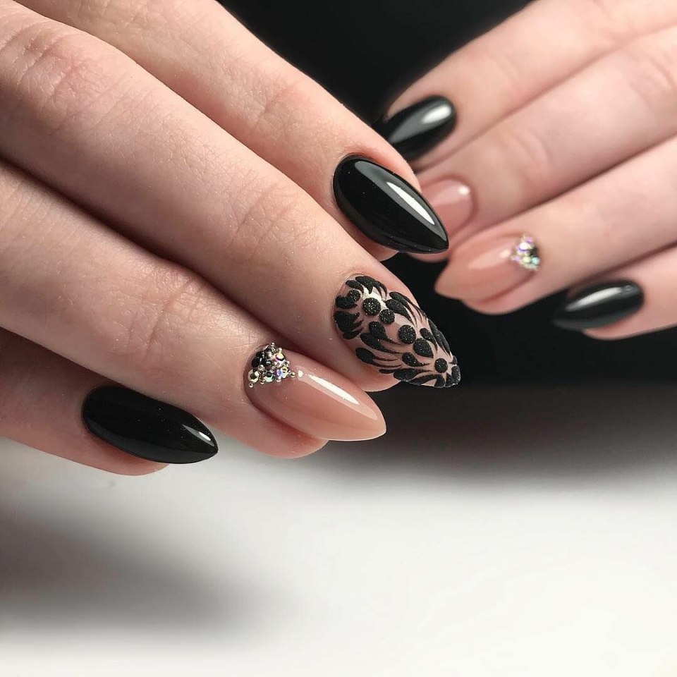 Маникюр черный комбинированный