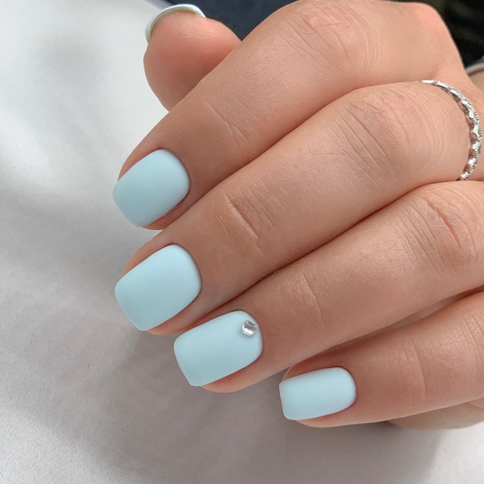 Голубой матовый маникюр