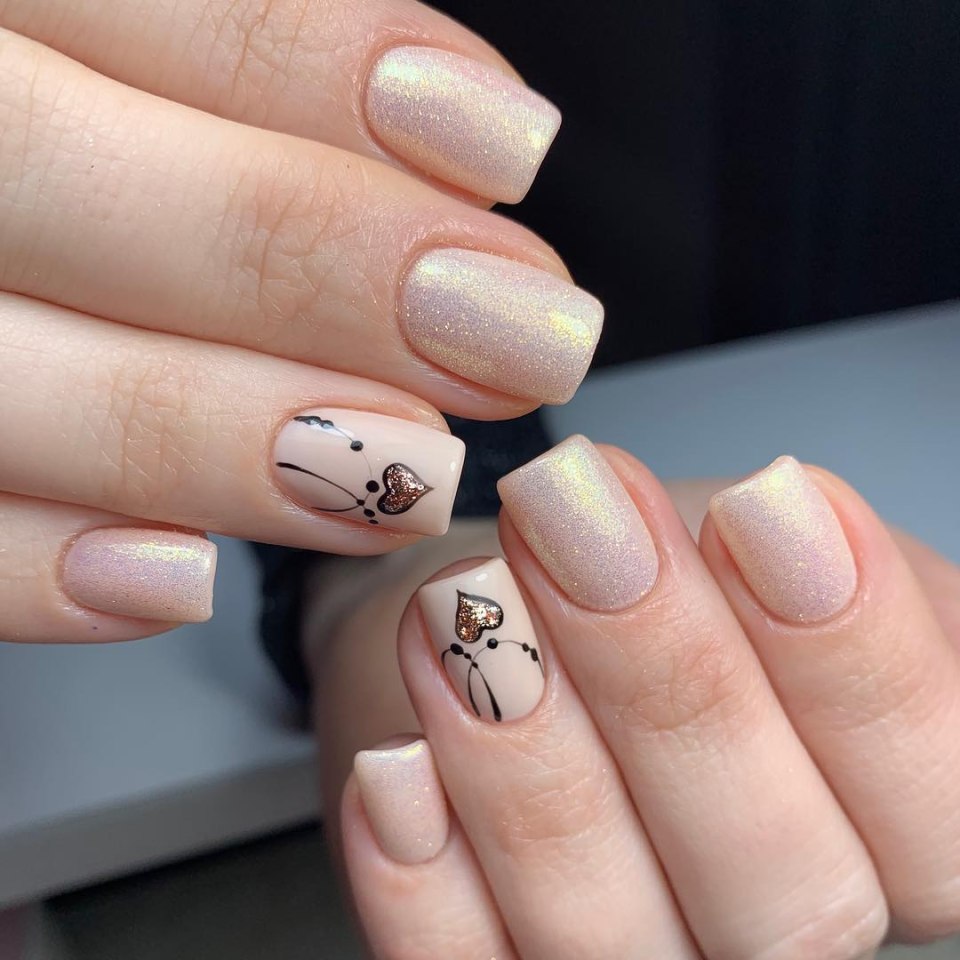 Маникюр на короткие ногти бежевый с черным