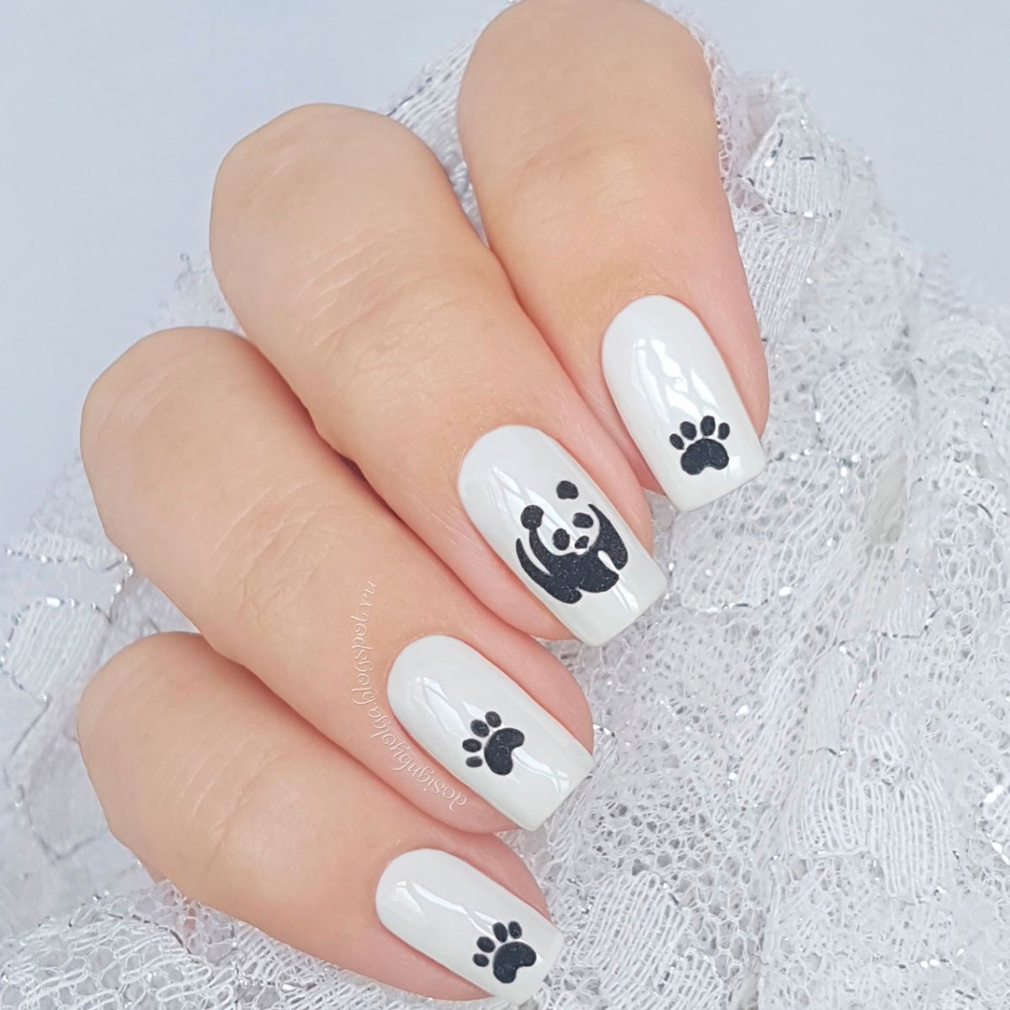 Дизайн френч ногтей белый черный с пандой (80 фото)