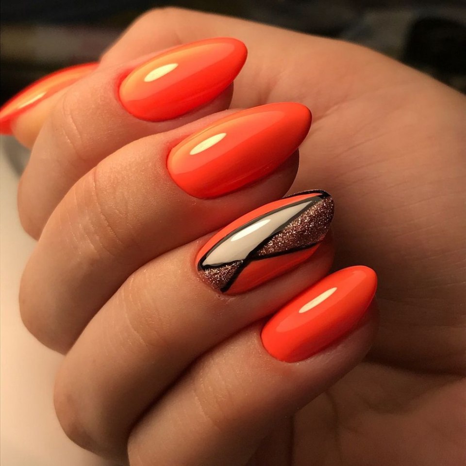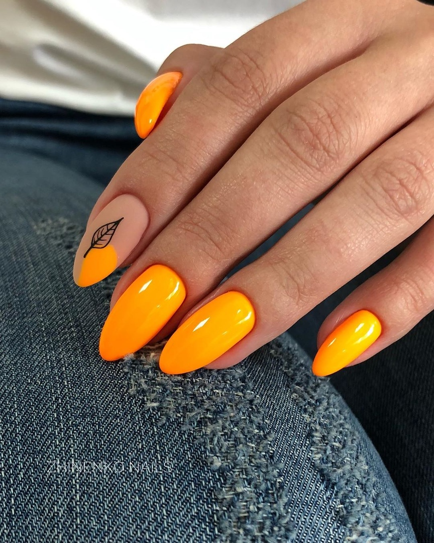 Яркий осенний маникюр на миндальную форму (76 фото)