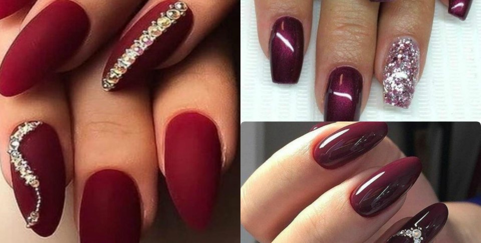 Маникюр дизайн винный цвет с рисунком (76 фото)