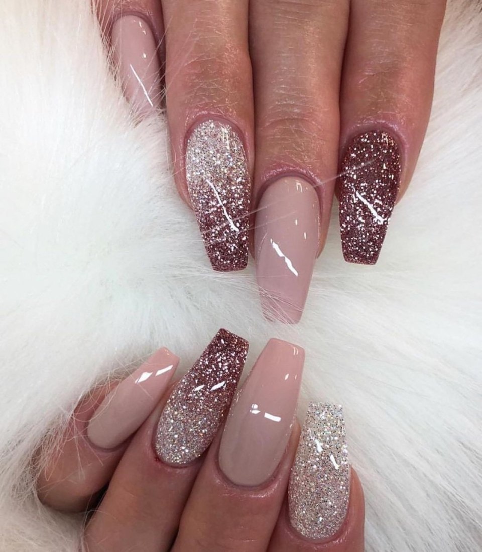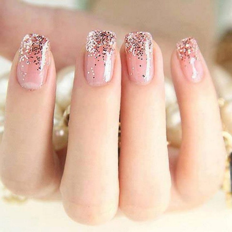 Маникюр нюд с блестками