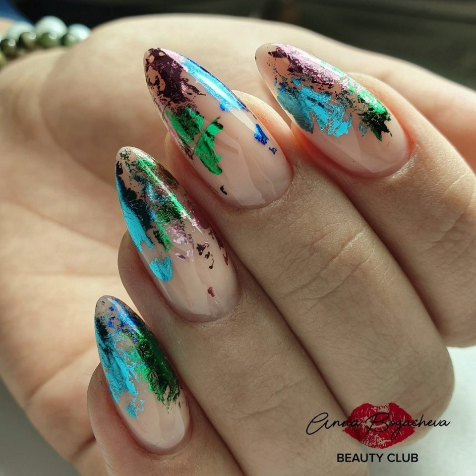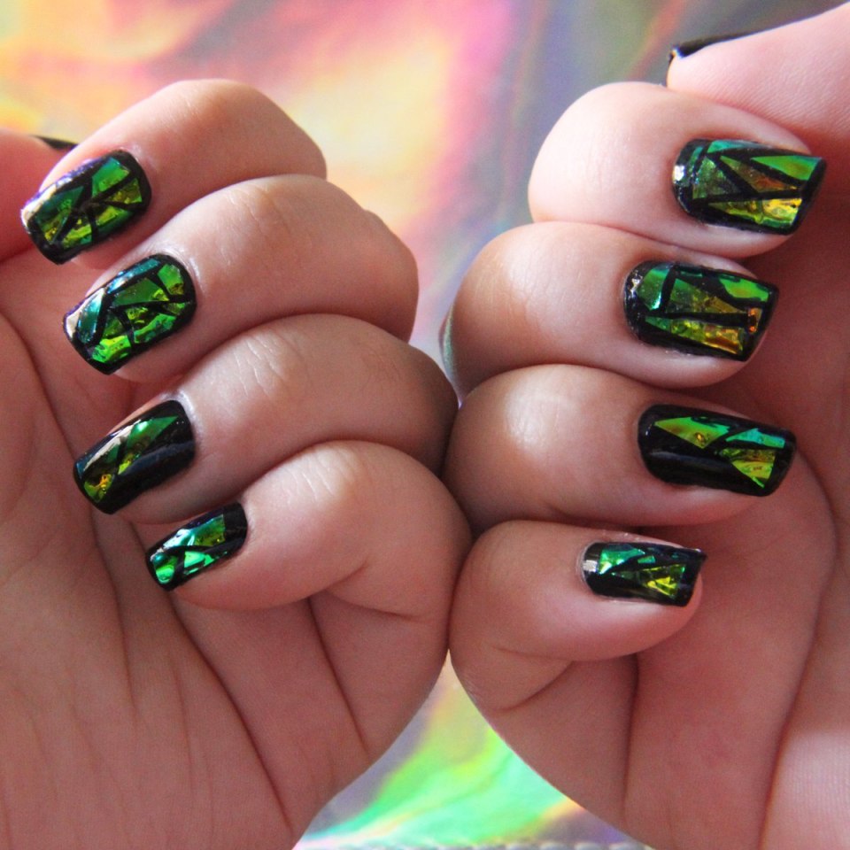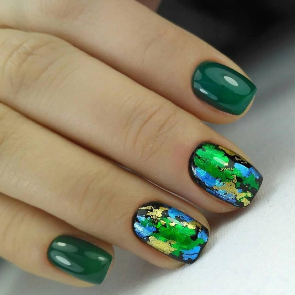 Дизайн ногтей зеленый с фольгой (78 фото)
