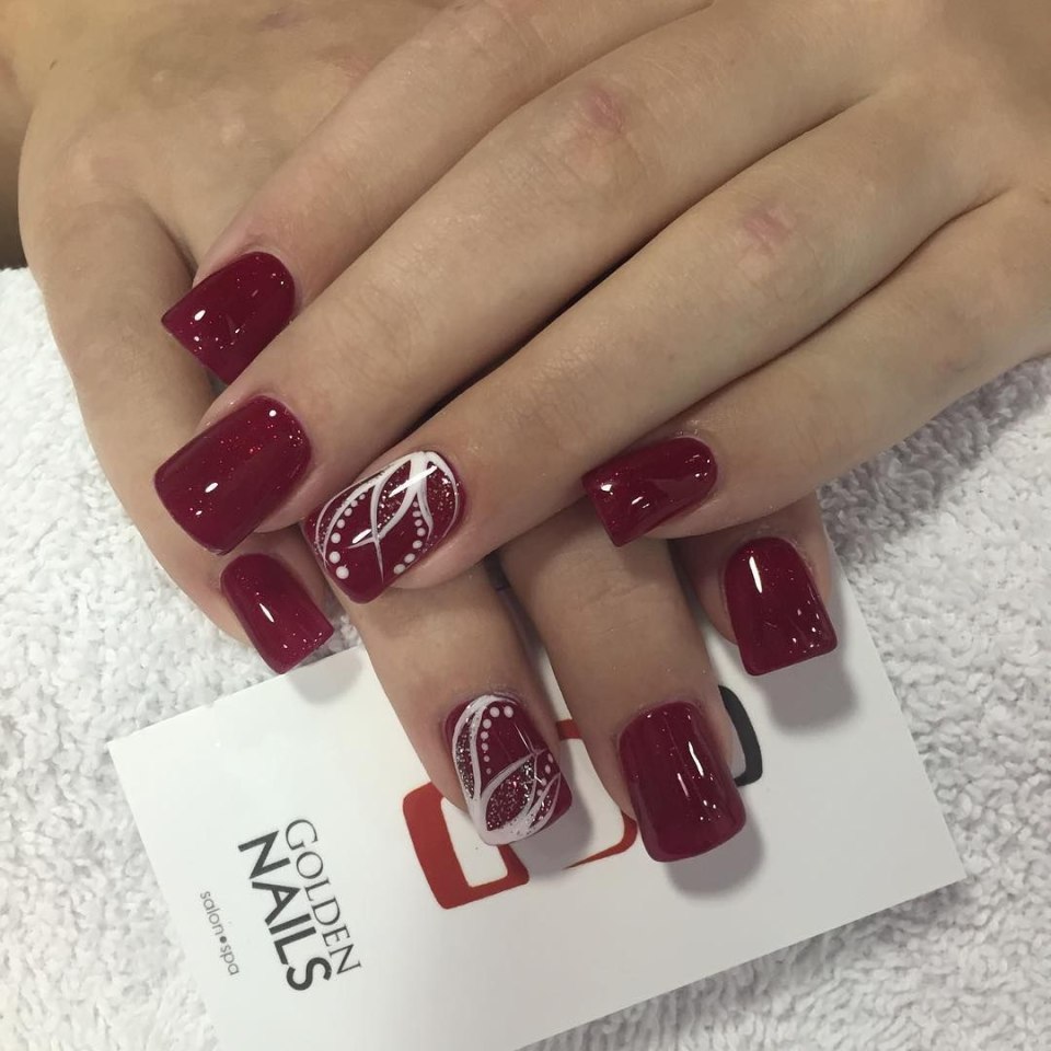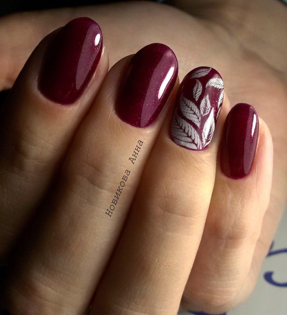 Бордовый маникюр с рисунком на короткие ногти (78 фото)