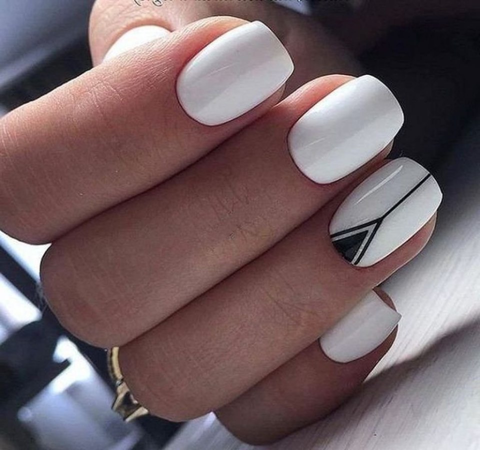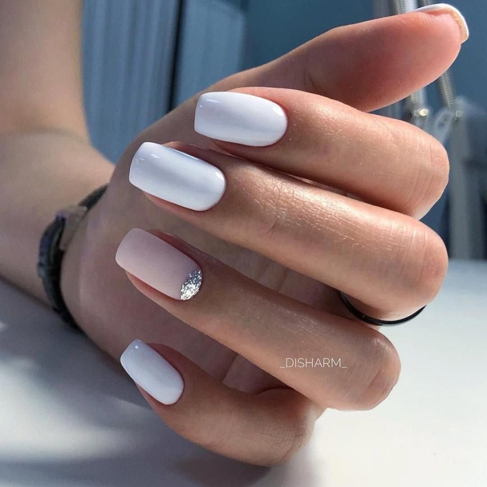 Маникюр с белым лаком комбинированный