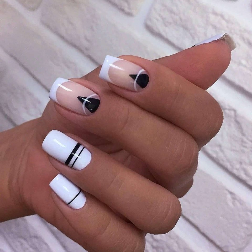 Маникюр белый с черным