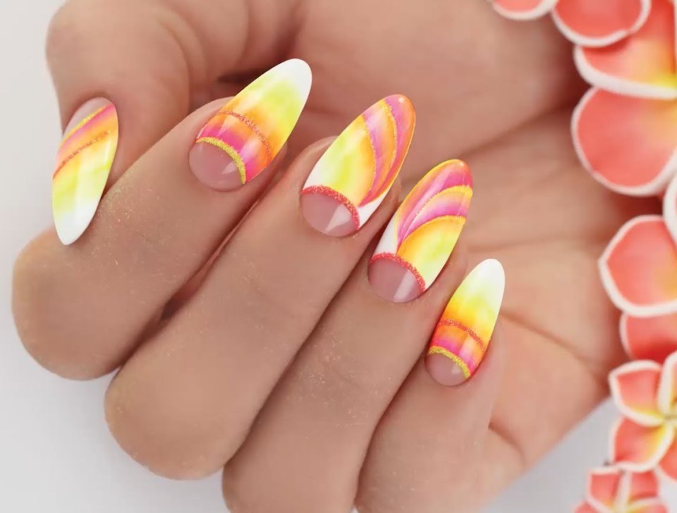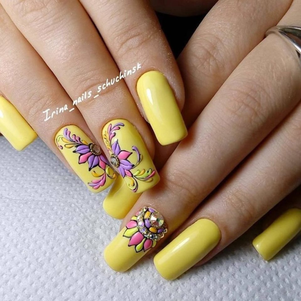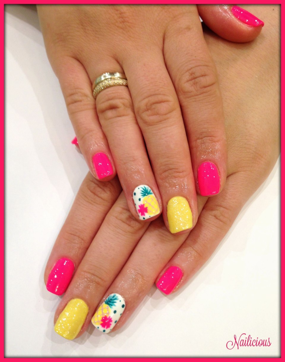 Дизайн ногтей лето желтый и розовый (78 фото)