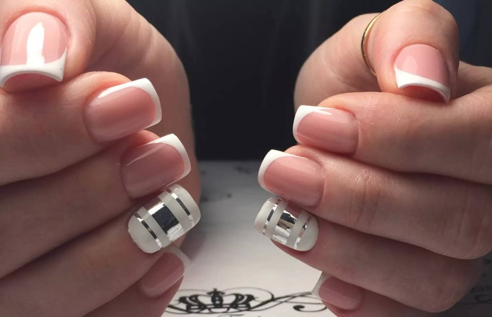 Белый френч на короткие ногти квадратной формы (74 фото)