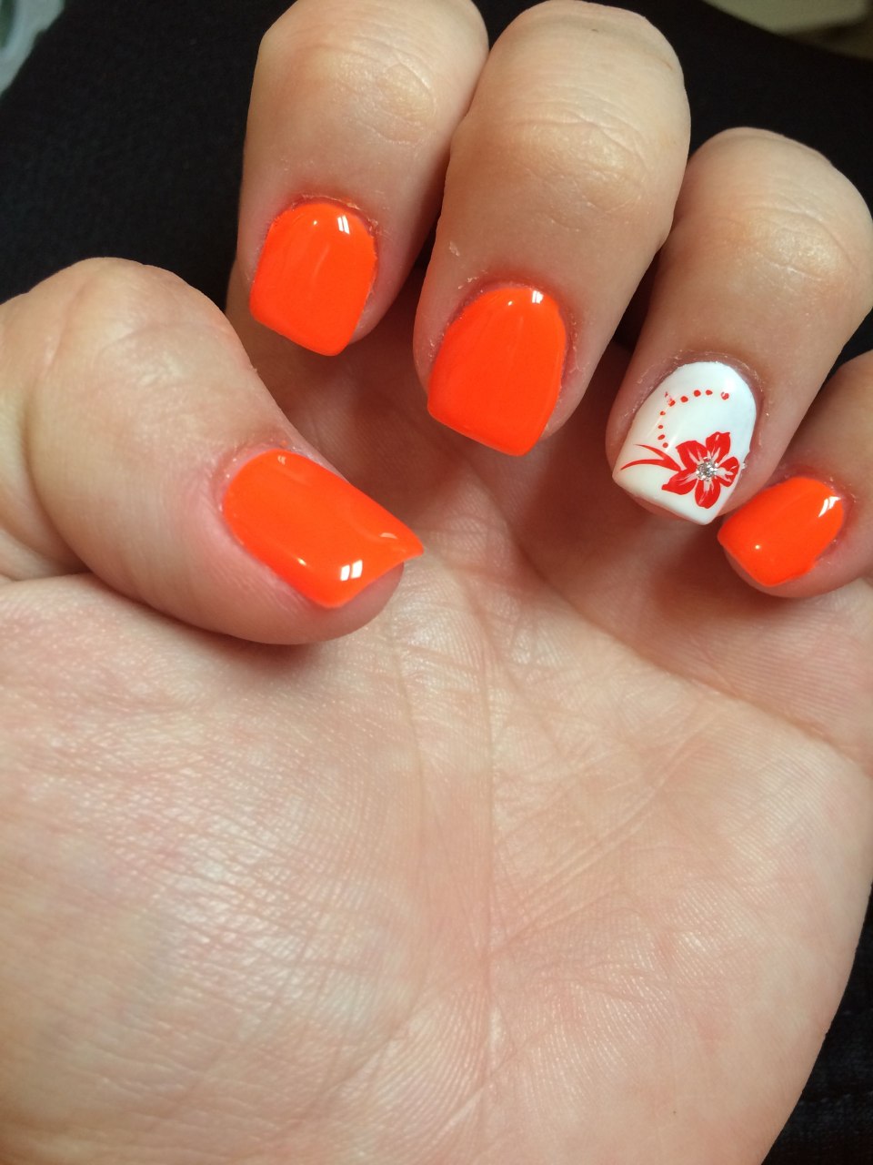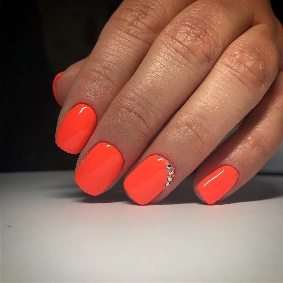 Неоновый оранжевый маникюр