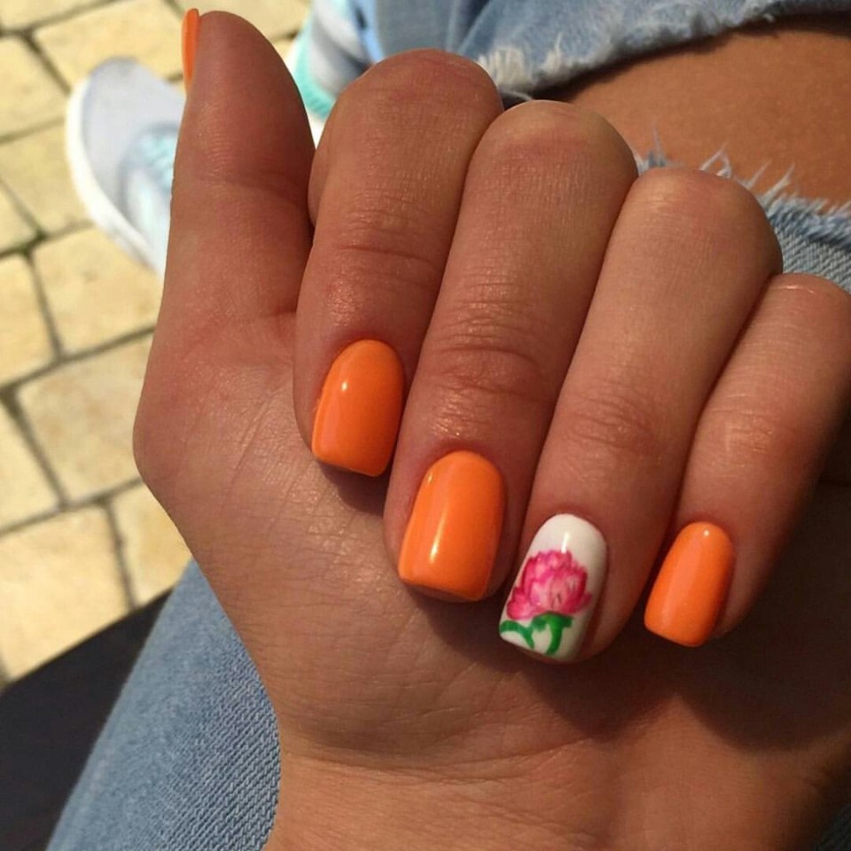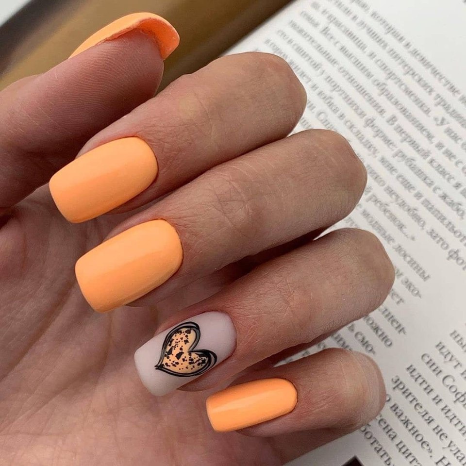 Маникюр оранжевый и персиковый цвет
