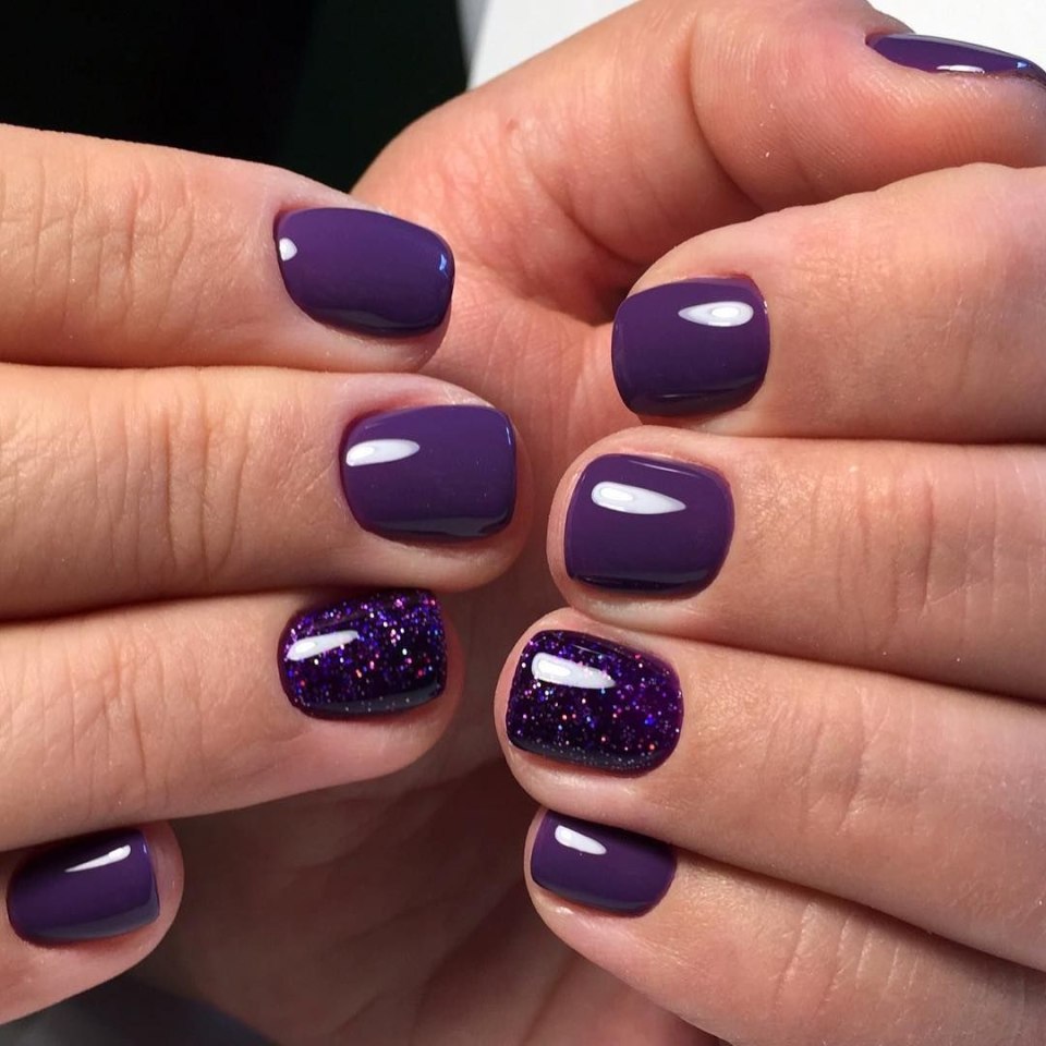 Маникюр с темно фиолетовым лаком