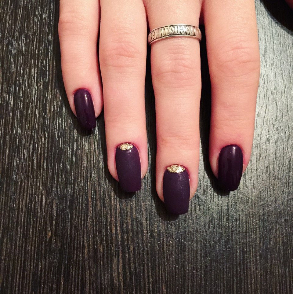 Маникюр фиолетовый матовый с золотом