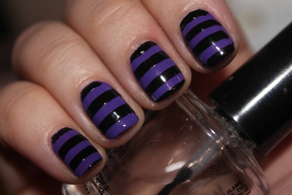 Фиолетовый маникюр с полосками