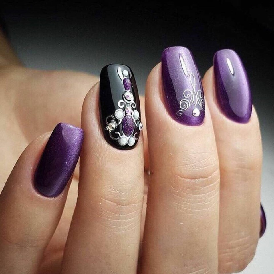 Черно сиреневый маникюр