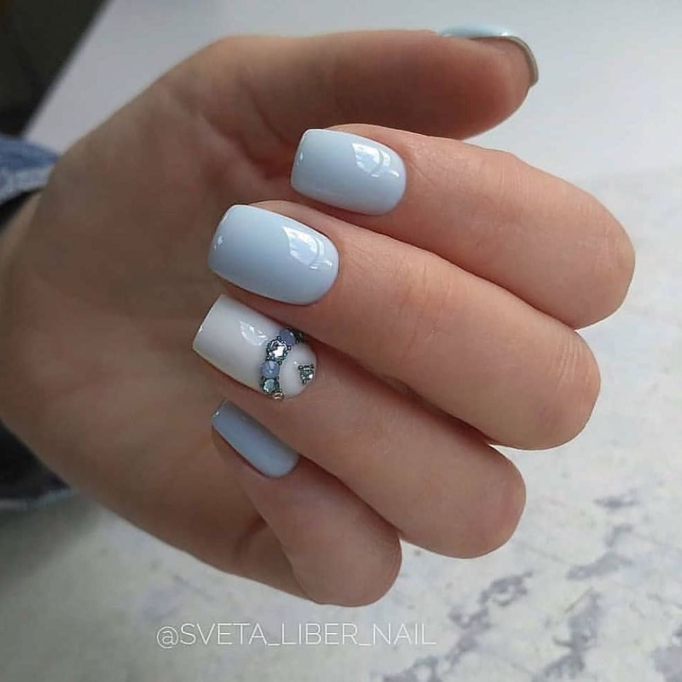 Пастельно голубой маникюр
