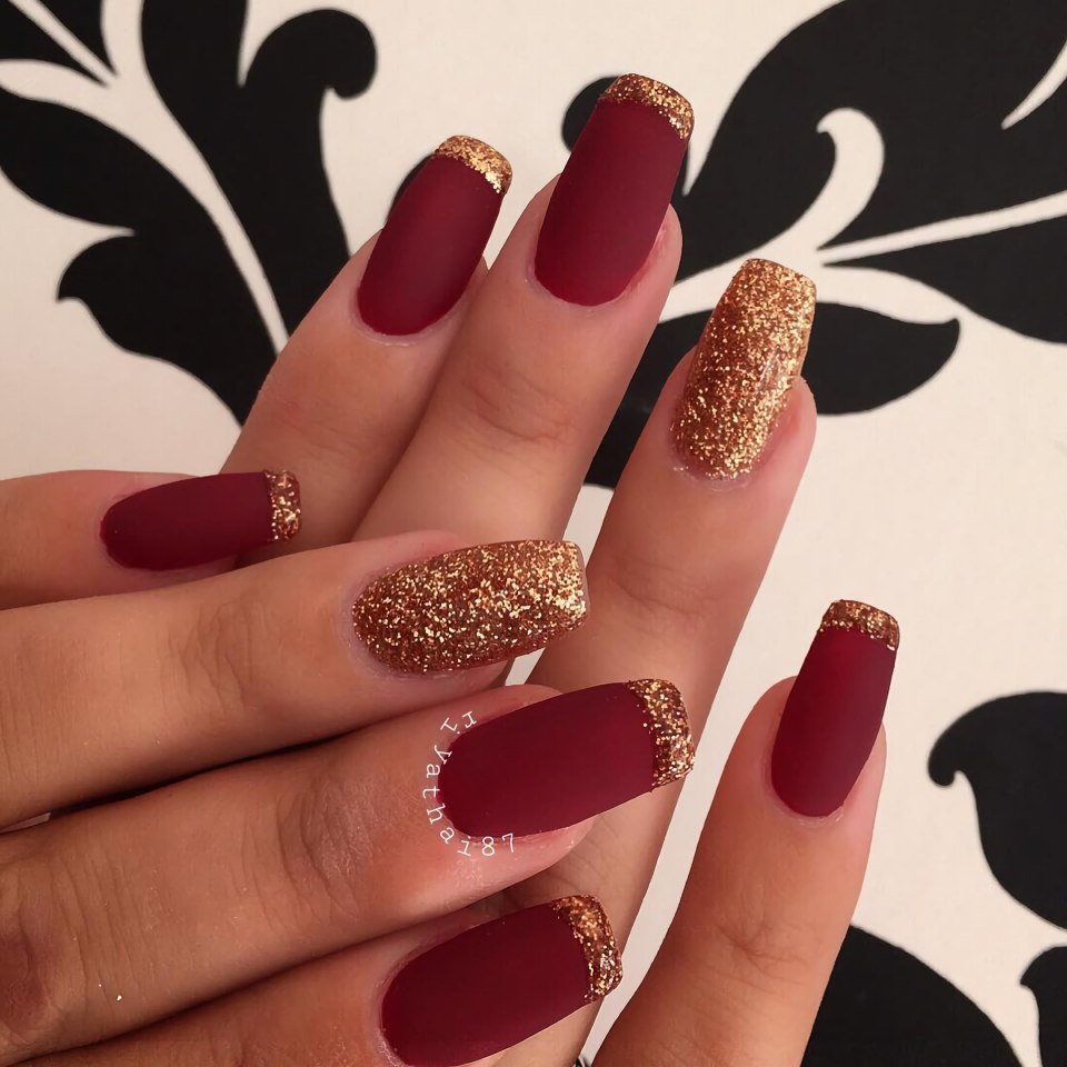 Маникюр под бордовое платье на свадьбу для гостьи (74 фото)