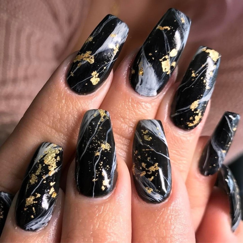 Гель лак с черными вкраплениями на ногтях (77 фото)