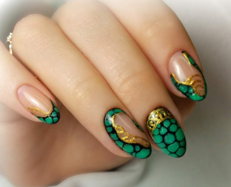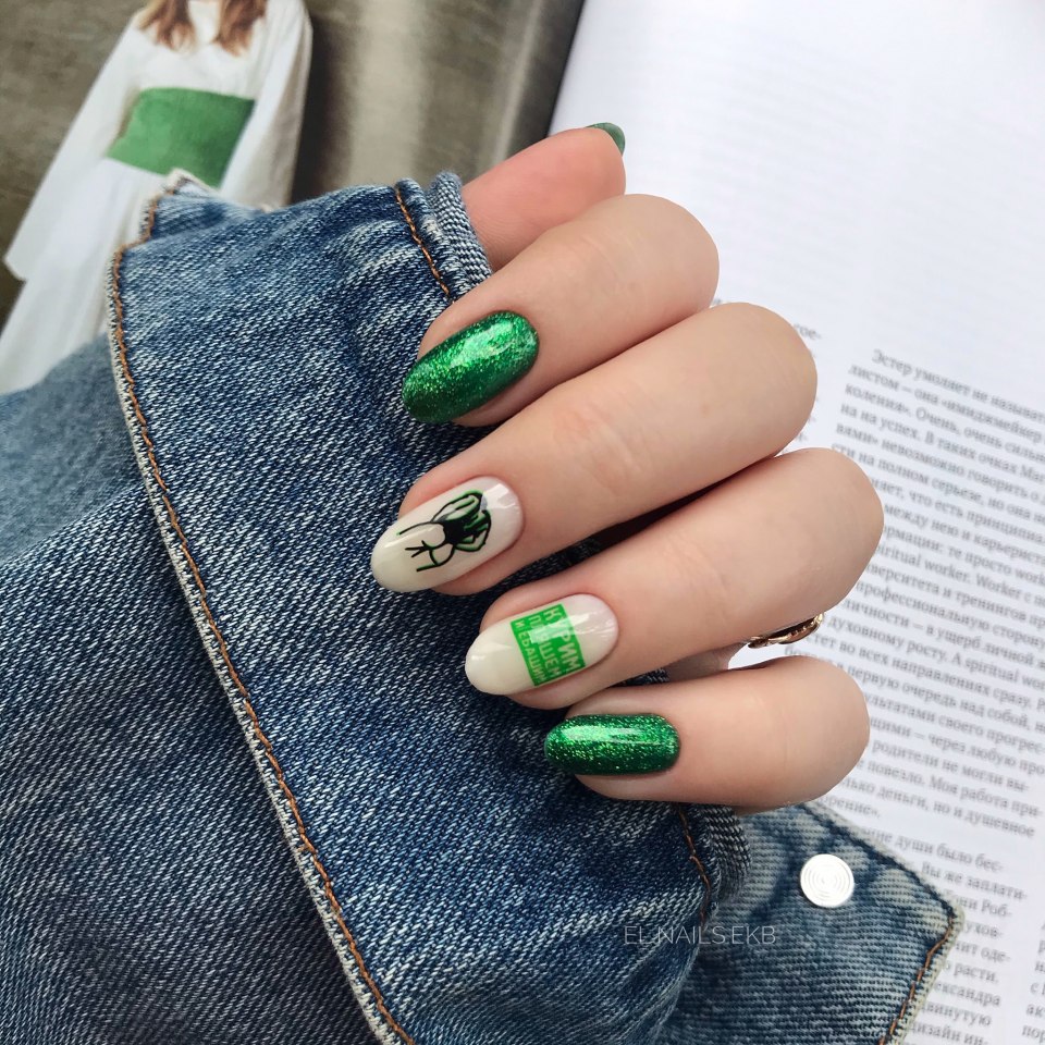 Маникюр изумрудный, травяной, малахитовый, зеленый