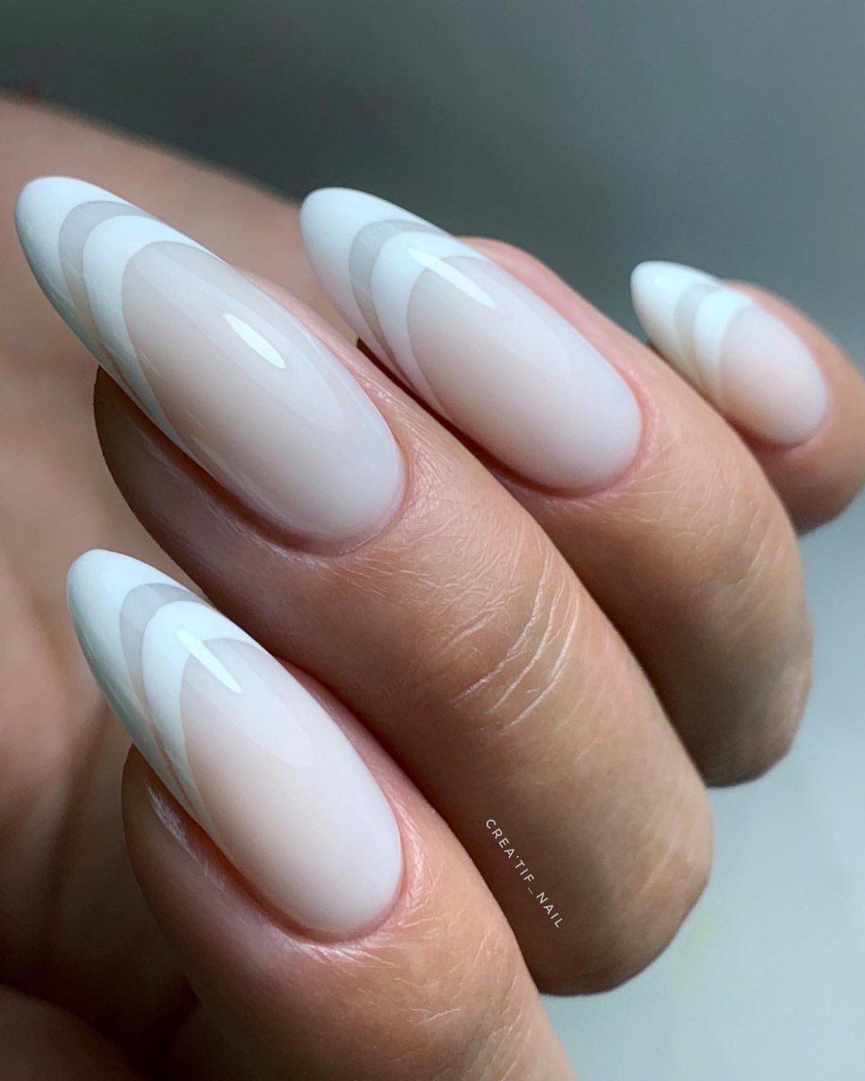 Молочный маникюр миндаль