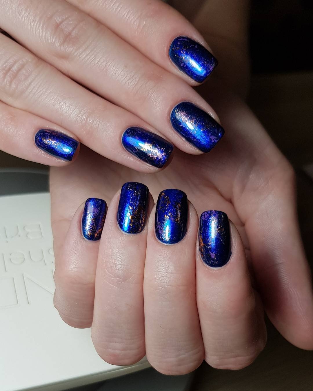 Маникюр синий металлик