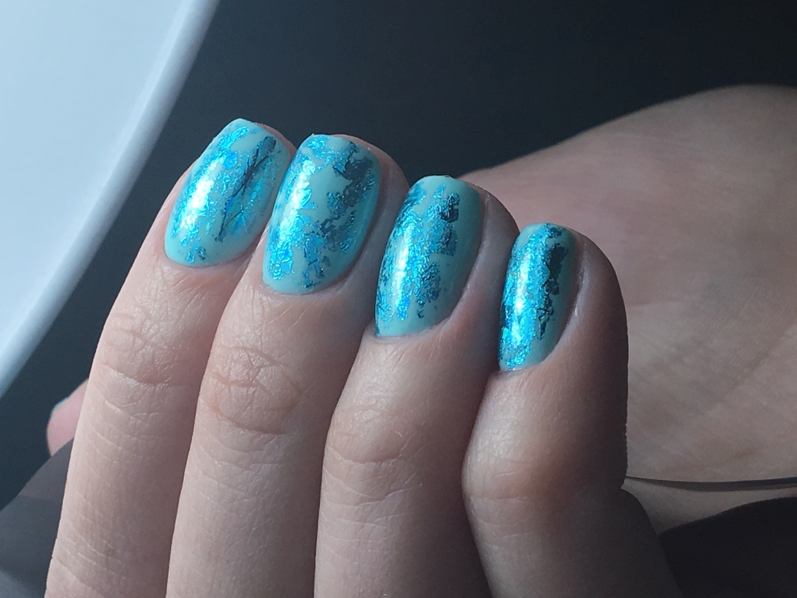 Голубой маникюр с фольгой