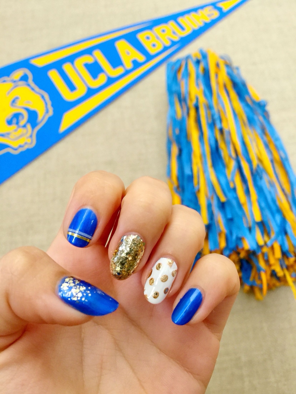 Маникюр синий с желтым на короткие ногти
