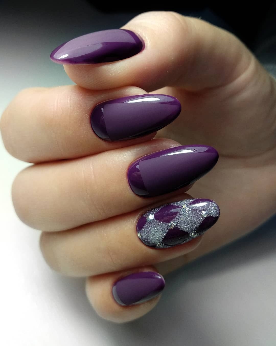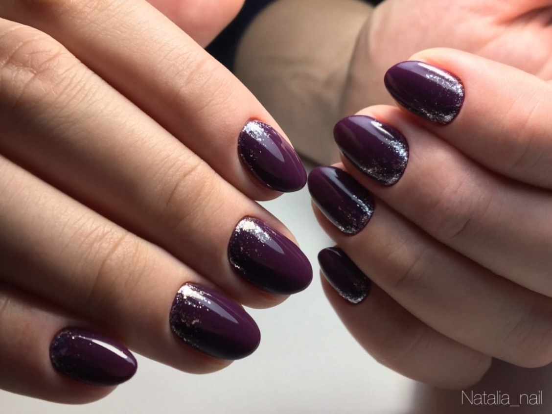 Баклажановый маникюр с дизайном на короткие ногти (19 фото)