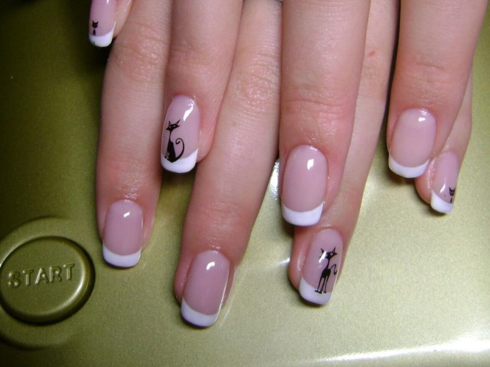Красивый французский маникюр с рисунком на небольшие ногти (51 фото)