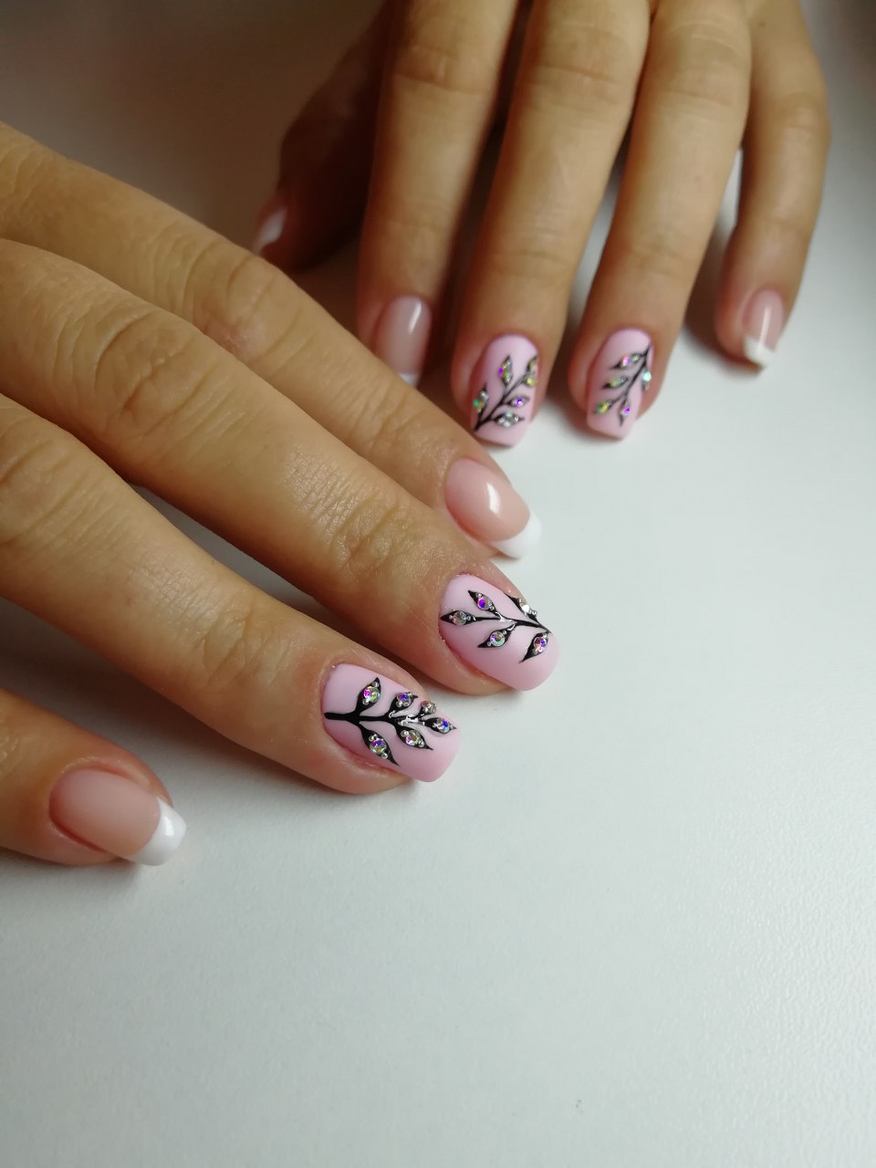 Французский маникюр со стразами на безымянном пальце