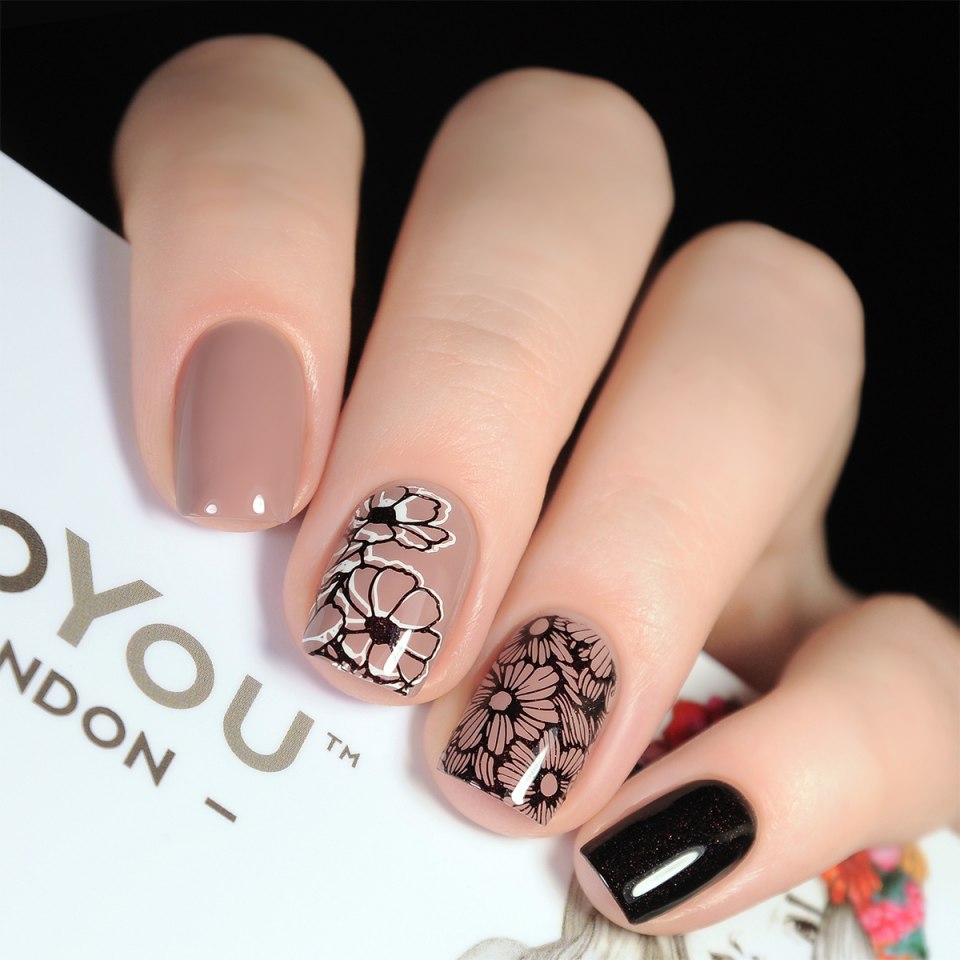 Маникюр стемпинг цветы