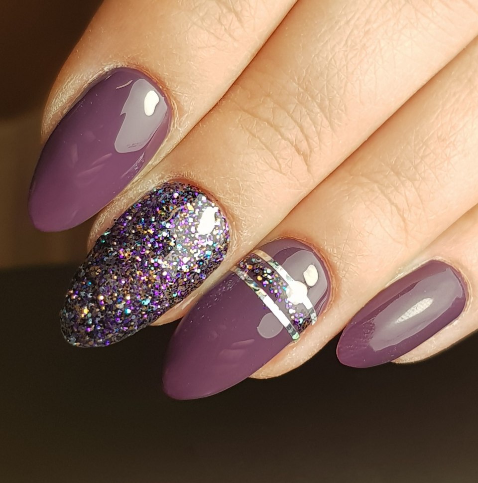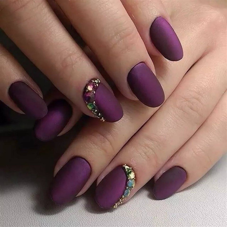 Темный фиолетовый маникюр со стразами новинки (27 фото)
