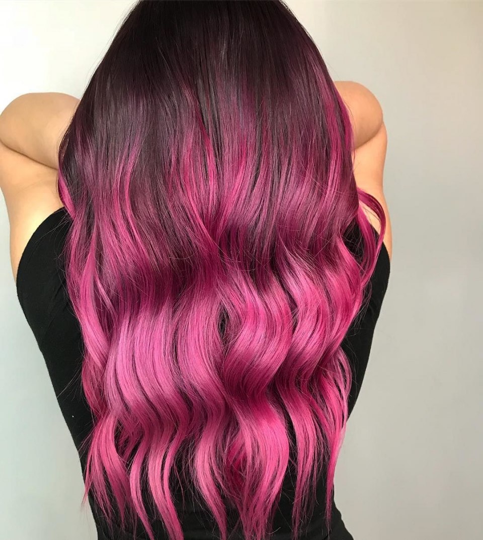 Розовый балаяж темные волосы 2021