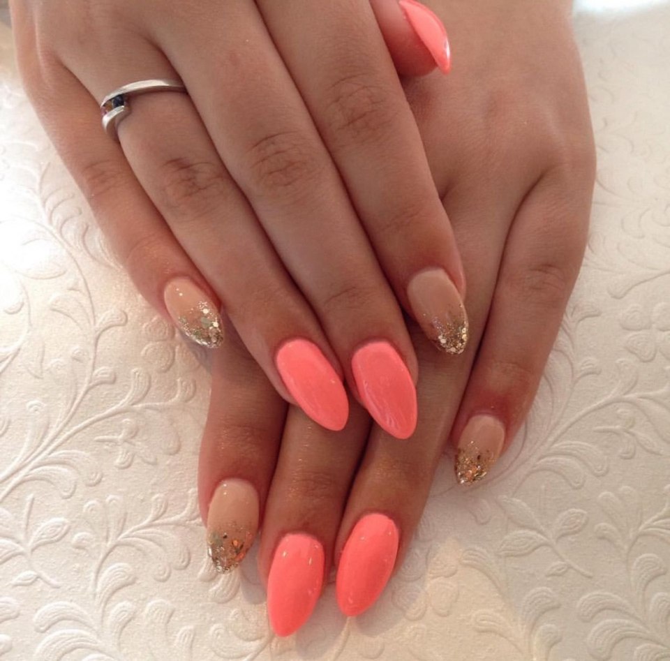 Коралловый маникюр на овальные ногти