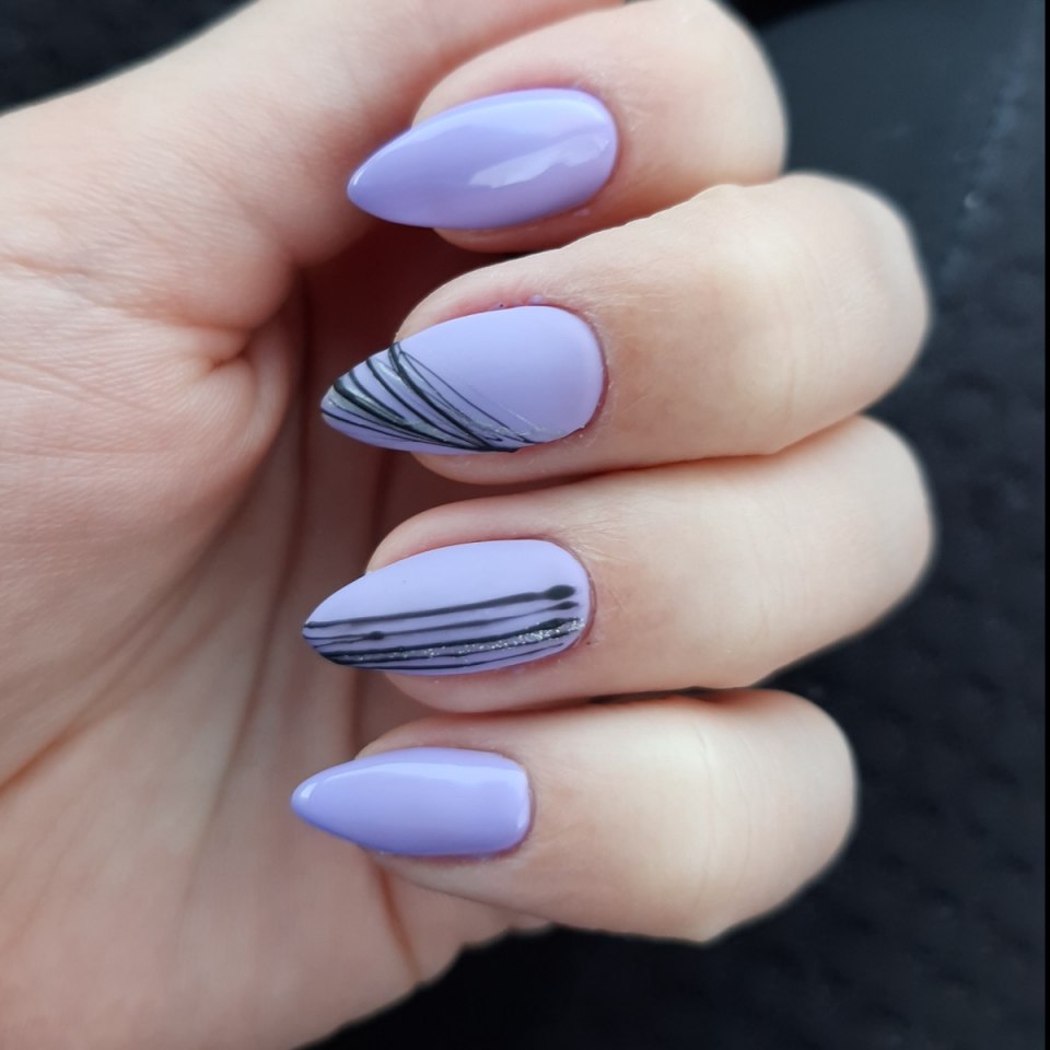 Маникюр сиреневый и голубой геометрия