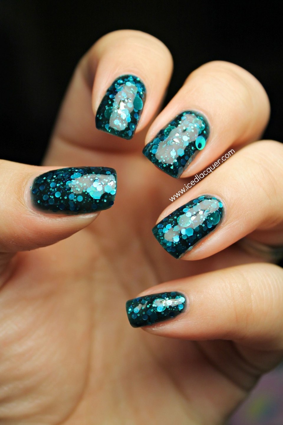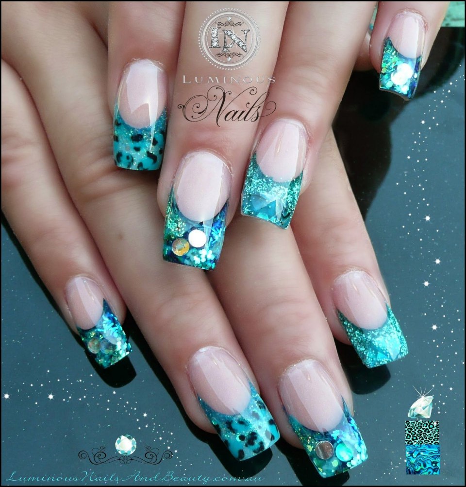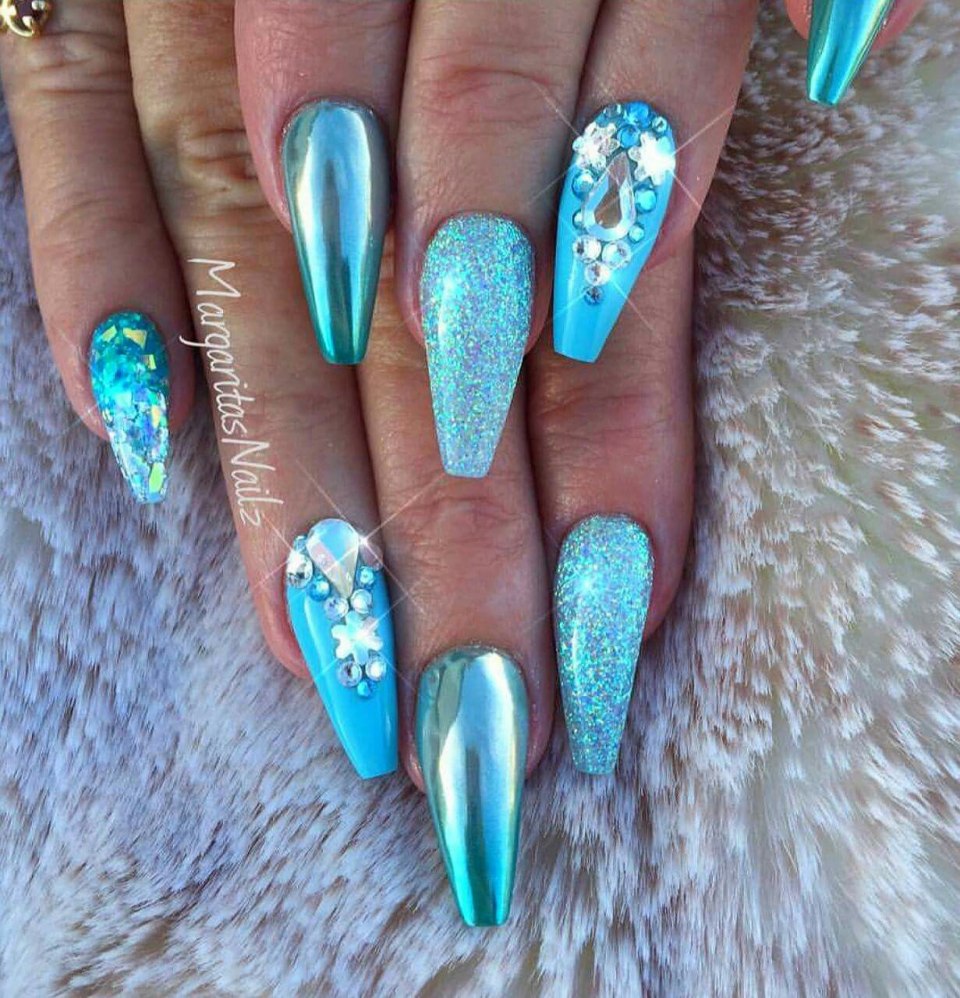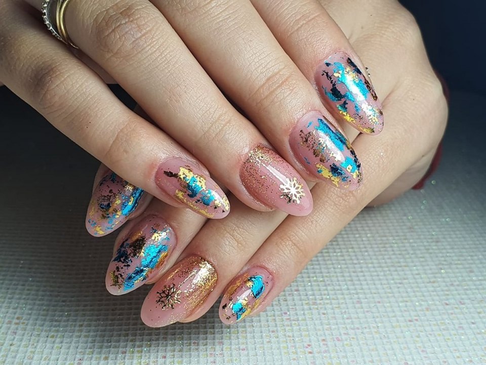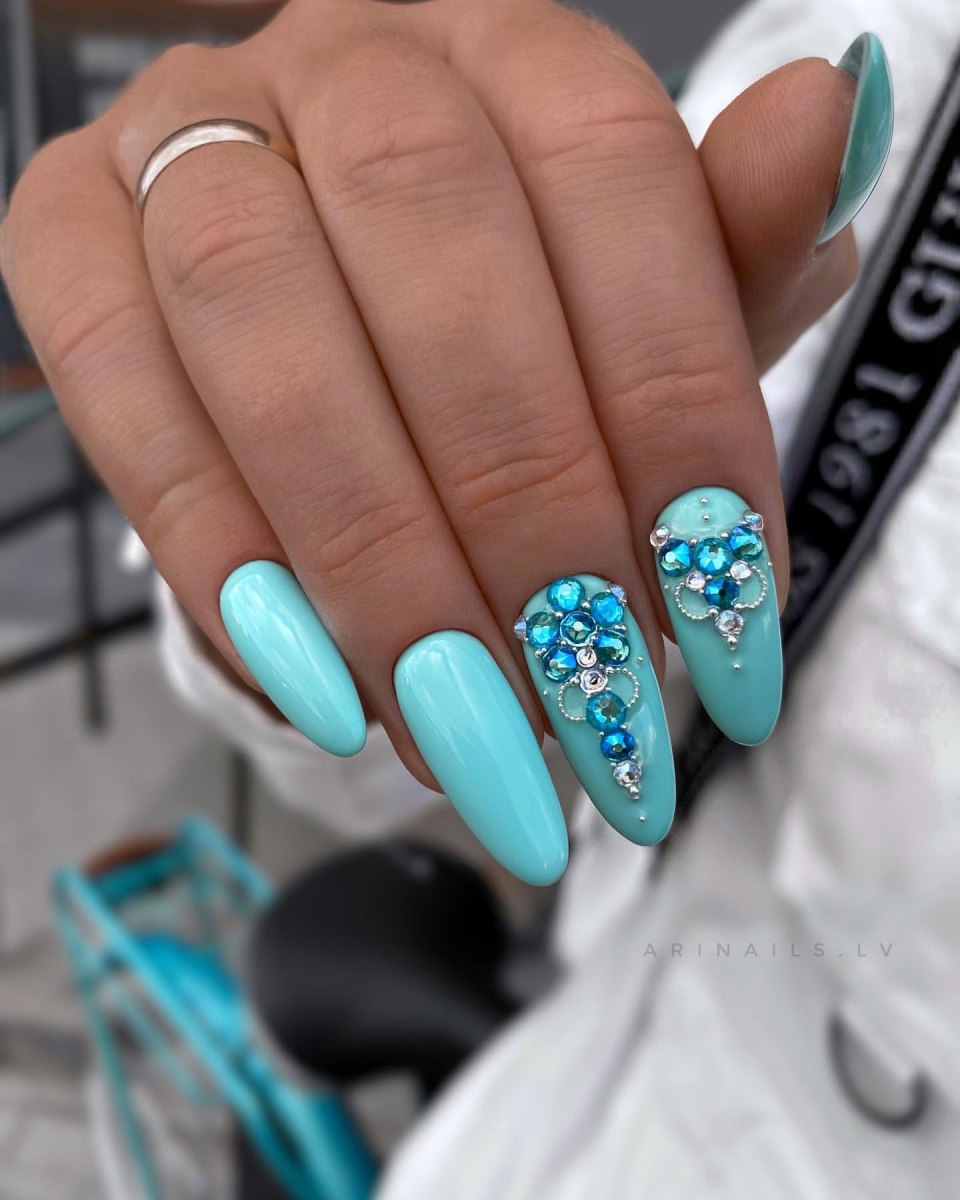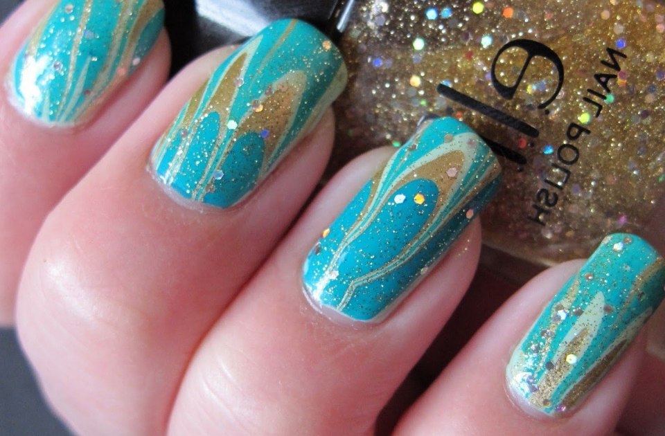 Маникюр на короткие ногти бирюзового цвета с втиркой