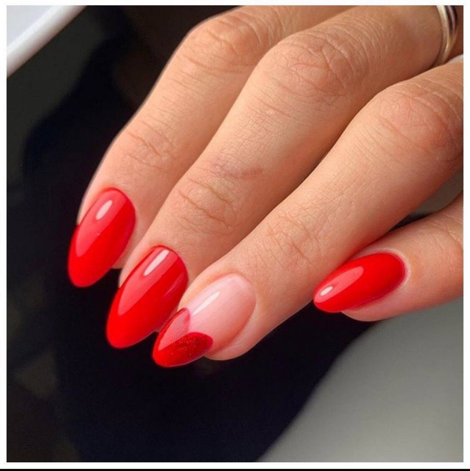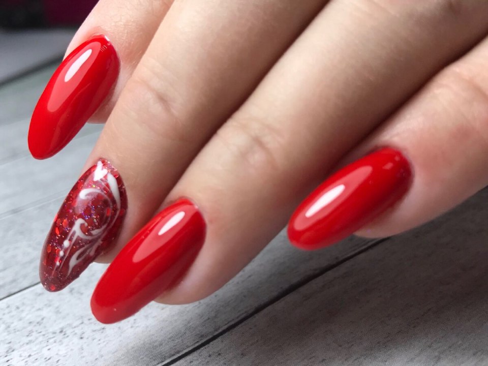 Красный маникюр на острые ногти