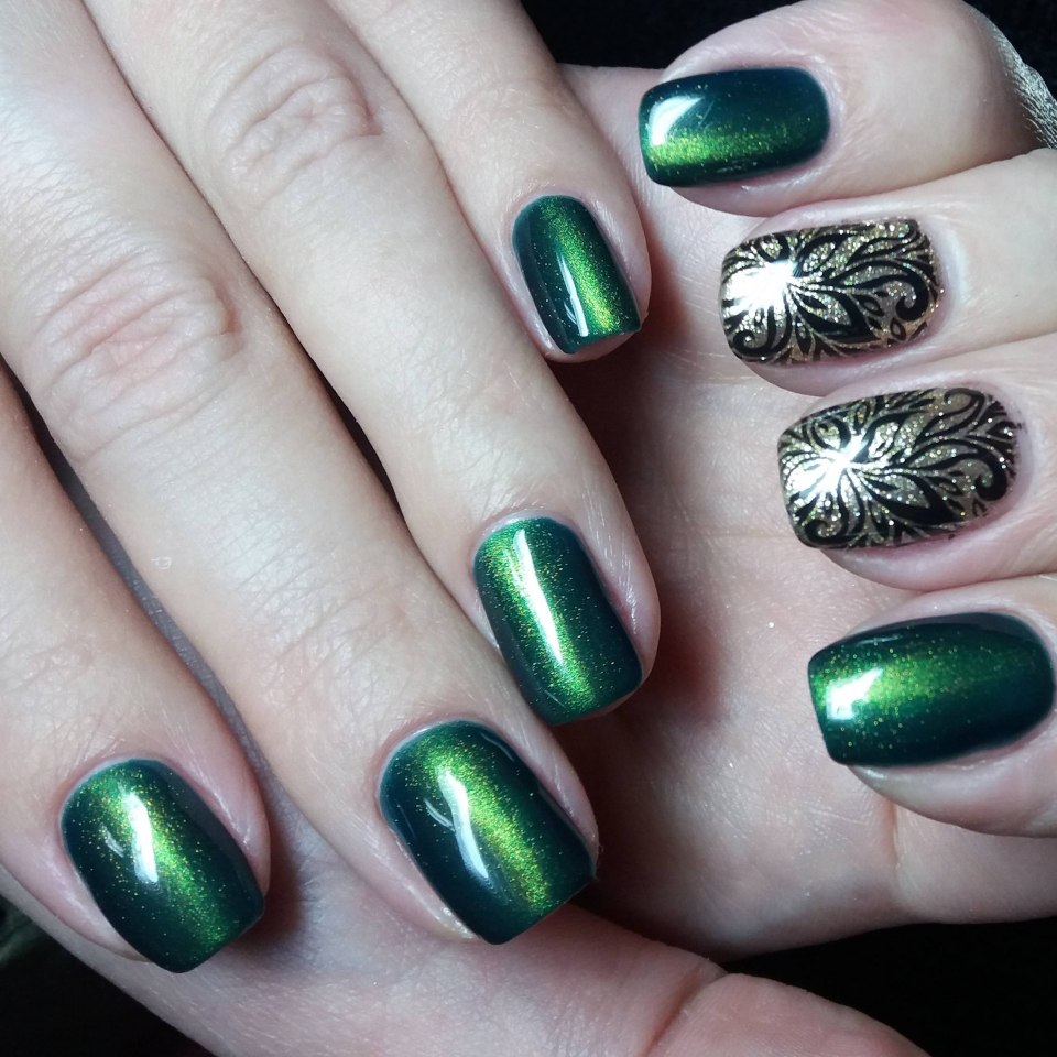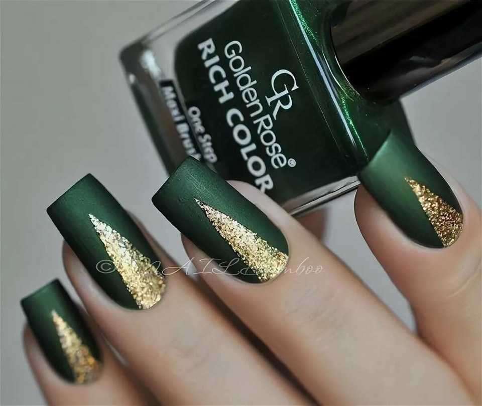Маникюр 2021 изумрудный с золотом