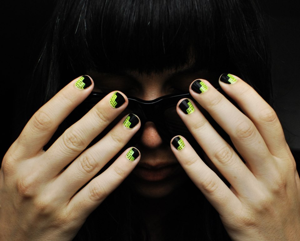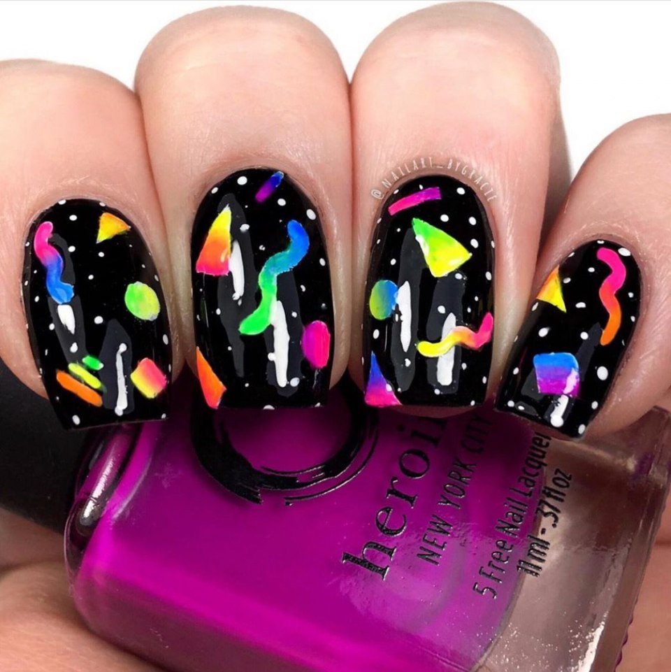 Чёрный маникюр с неоновым дизайном