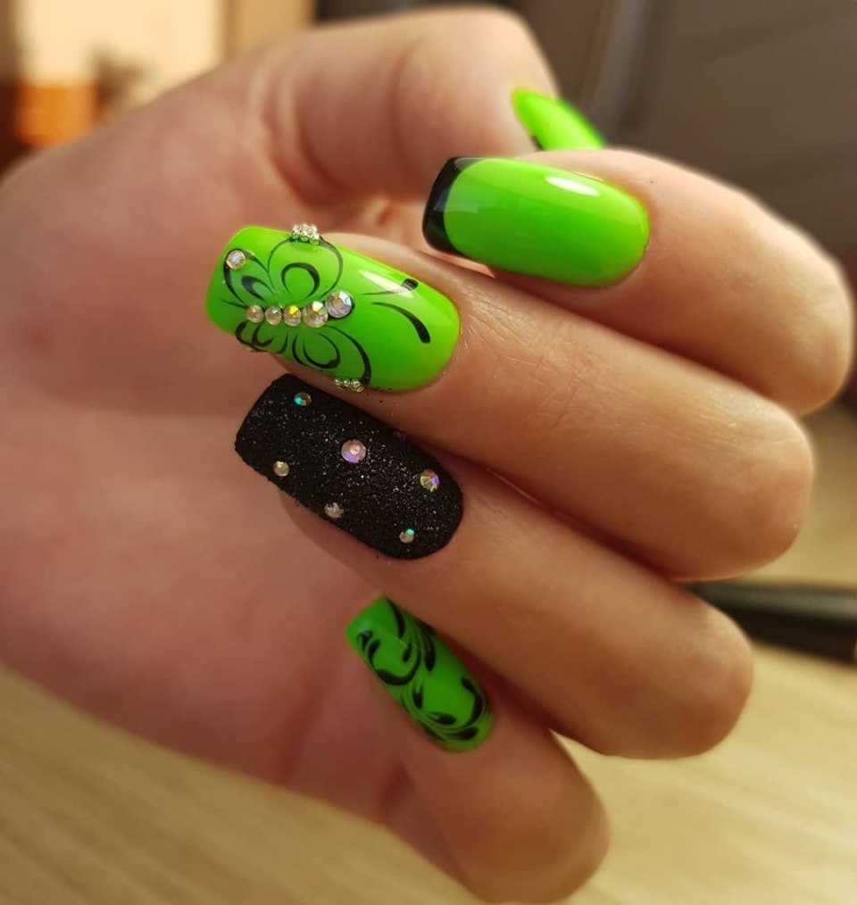Легкие рисунки зеленого цвета на ногтях (67 фото)