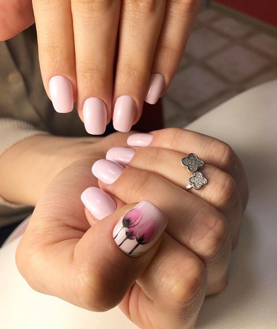 Нюдовый маникюр 2021 на короткие квадратные ногти