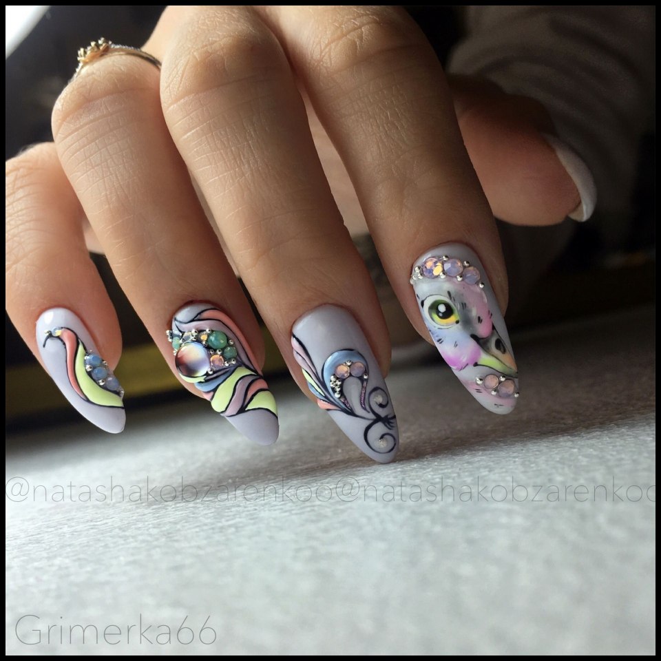 Ногти дизайн новинки 2021 с пером Жар птицы