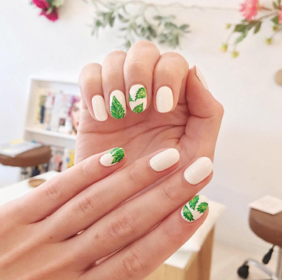 Маникюр с зеленой веточкой