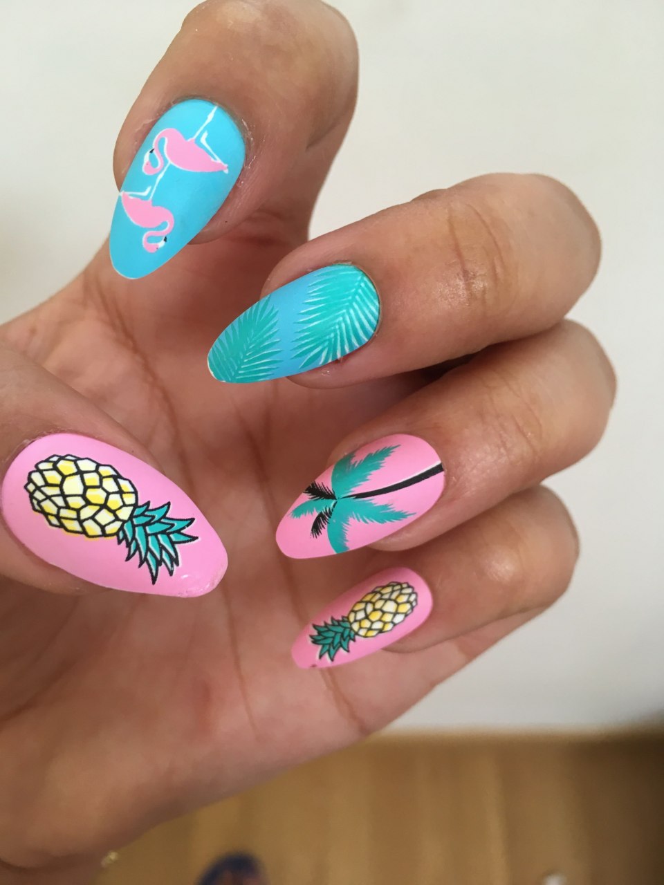 Маникюр дизайн яркий молодежный с рисунками (38 фото)