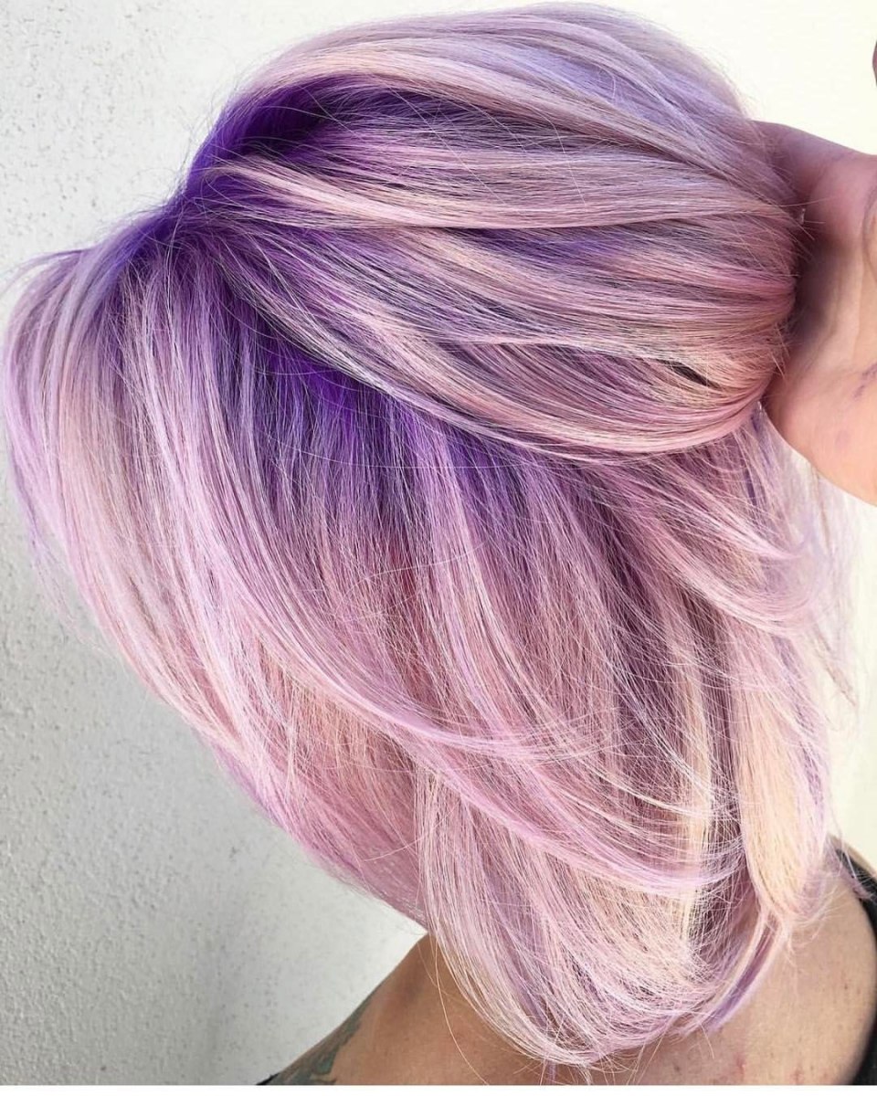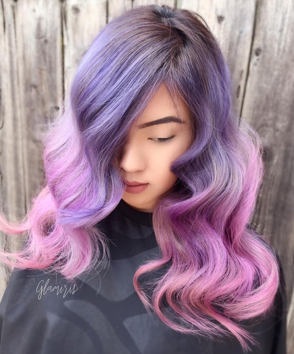 Розовые волосы с фиолетовыми прядями (58 фото)