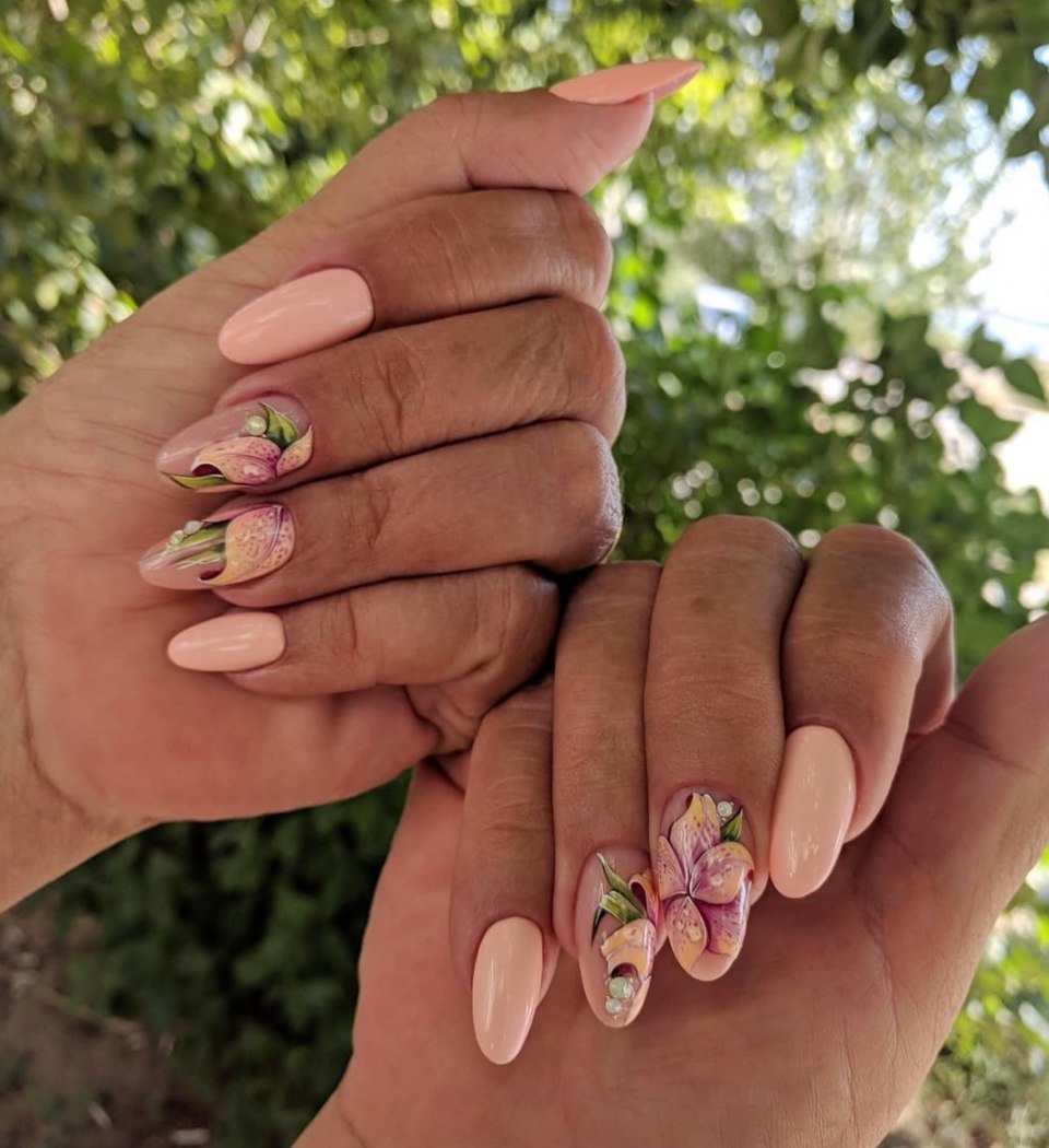 Маникюр лилии на ногтях